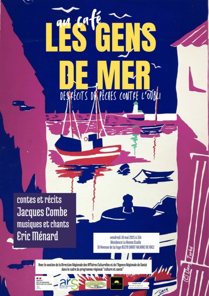Des ateliers de collectage menés en 2024 au sein de l’établissement ont donné lieu à une résidence de création au sein de l’Ehpad, puis au spectacle “Au café des Gens de mer”, créé en mai 2025 par le conteur Jacques Combe et mis en musique avec Eric Ménard, guitariste et leader de Coco Locos. Ce projet a pu voir le jour grâce au partenariat entre Oro Y Negro, maille d’art, la maison de retraite La Bonne Etoile, et le soutien de la DRAC et l’ARS des Pays de la Loire, dans le cadre du dispositif Culture et Santé.